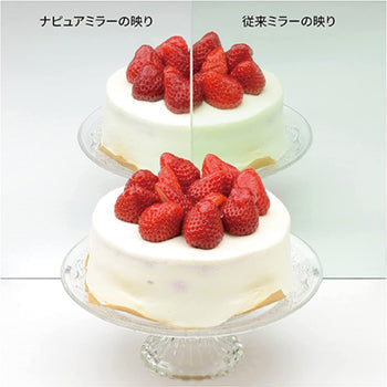 HORIUCHI MIRROR is a mirror patented in Japan that reflects the true image of the user by combining highly transparent glass and reflective metal. Highly transparent glass has more of the iron, which causes dullness, removed while reflective metal reproduces colors more accurately.