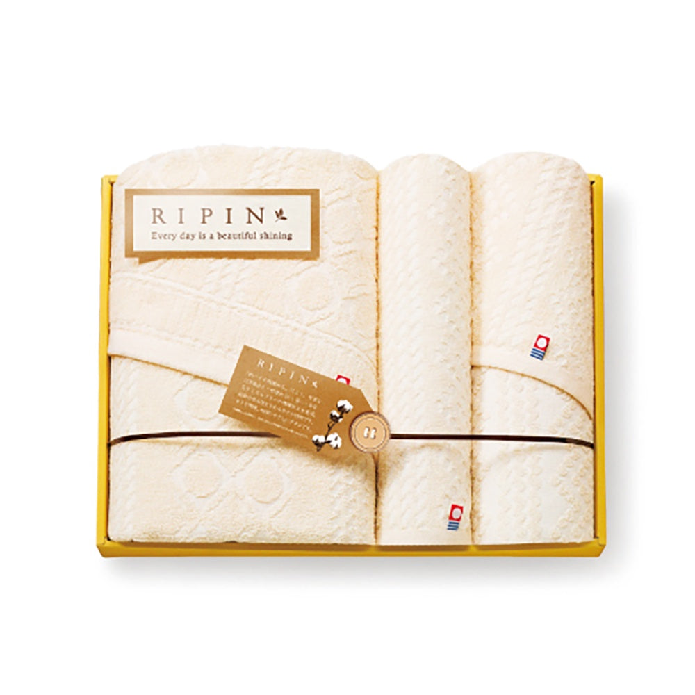 Imabari RIPIN Gentle Towel 3pc Gift Set (Bath Towel 1pc, Face Towel 1pc, Wash Towel 1pc)