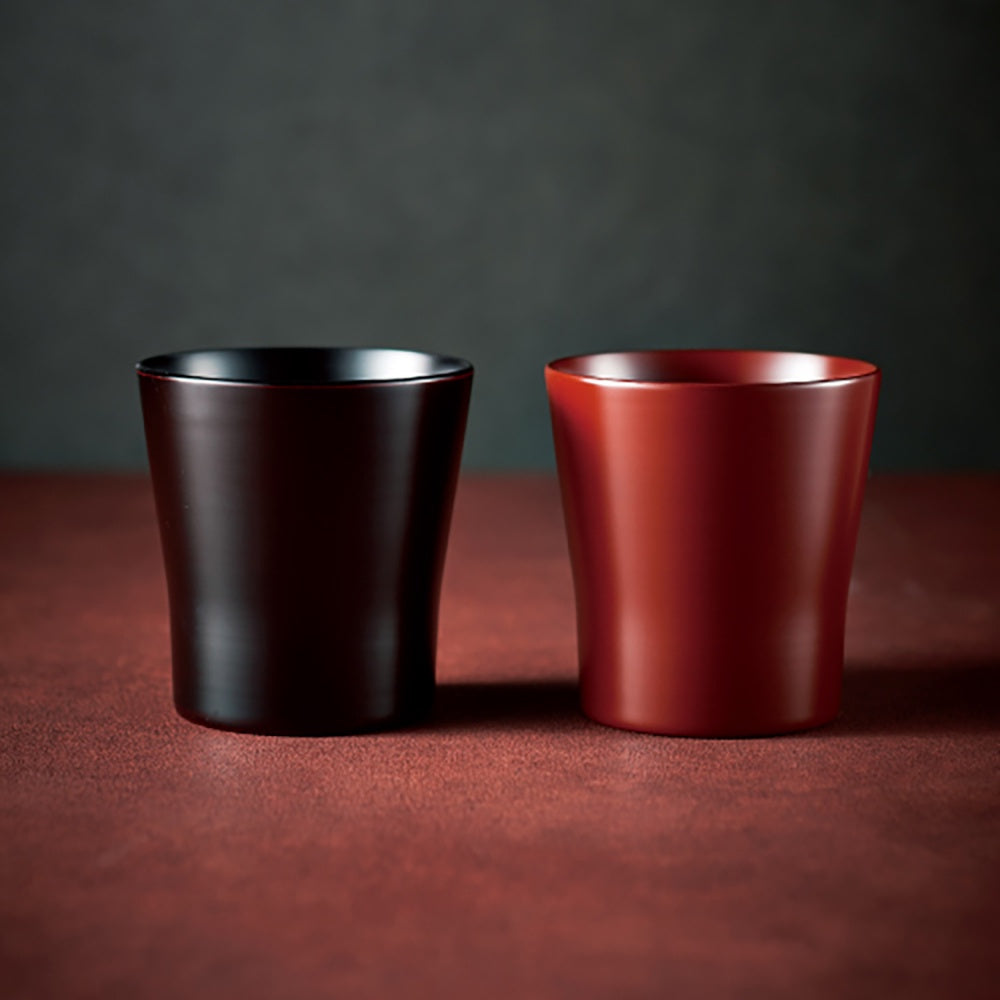 Hand-painted Lacquer Tumblers x 2 (Black & Vermilion)