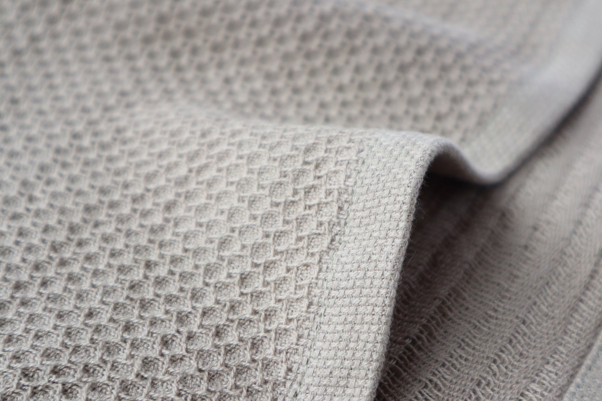 正面的六边形凸点(蜂窝状织法)和背面的粗纱织法交织在一起,给人以薄而柔和的感觉。