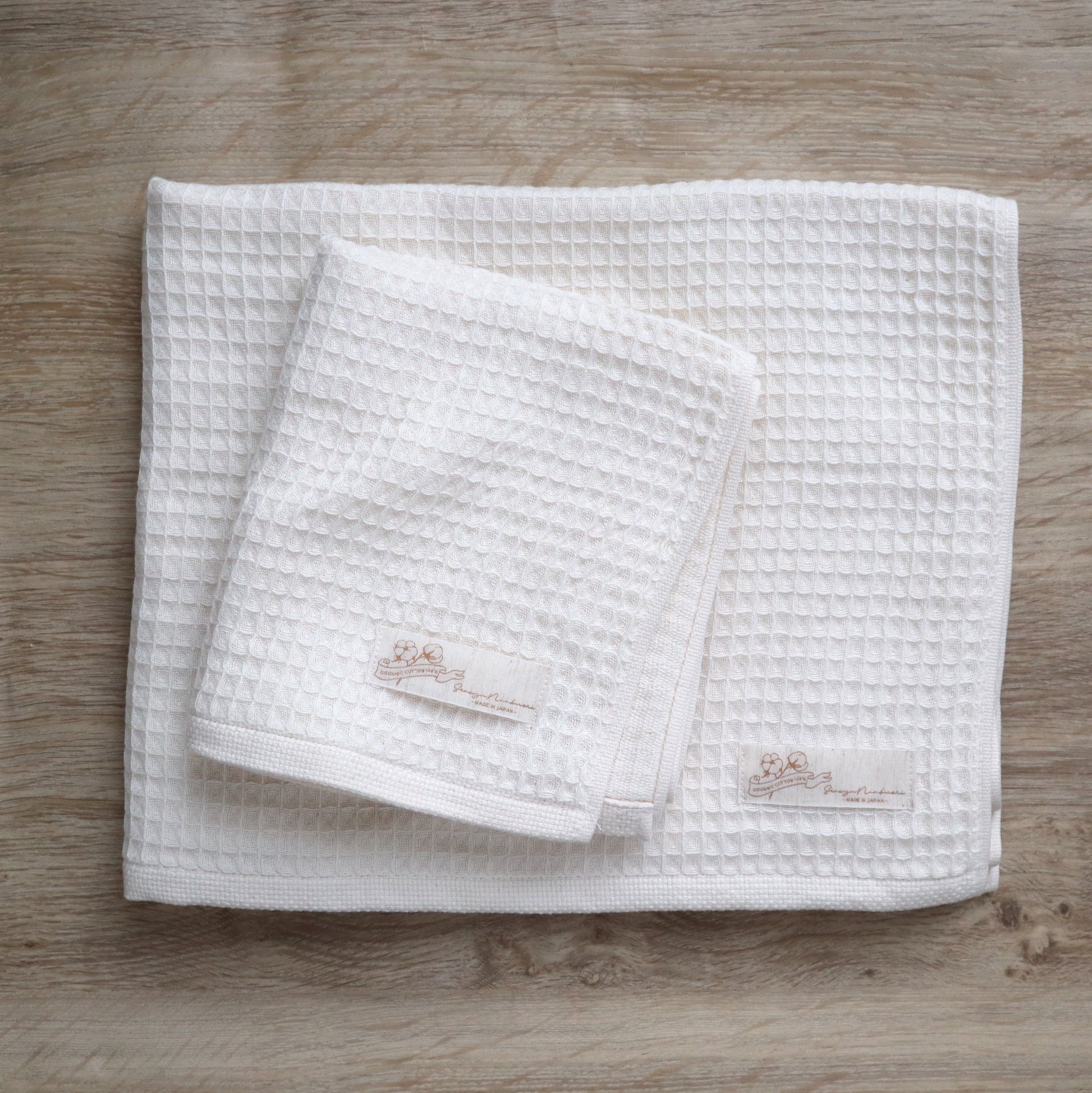 外表是用方形华夫饼编织的,反面是用粗纱布编织的,这样的毛巾薄而柔软,对皮肤温和。漂白后的过程使用酶来去除污垢,不使用任何化学品,使这些毛巾对环境和人都很友好。毛巾也是对环境和人友好的。