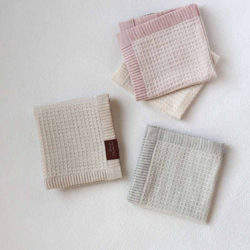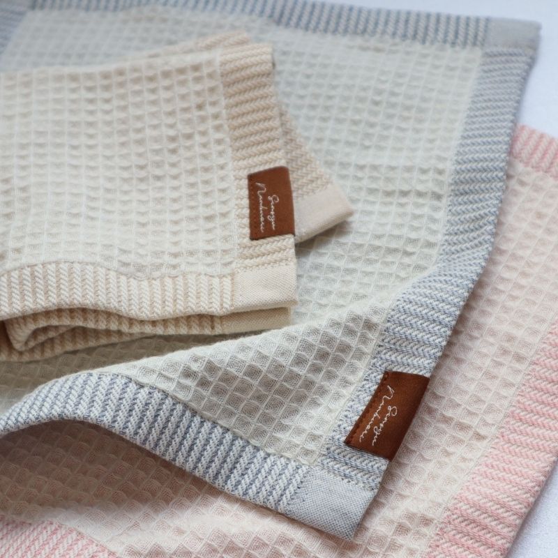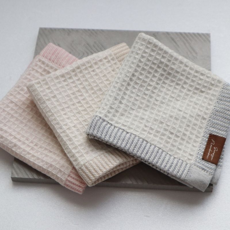 外表是用方形华夫饼编织的,反面是用粗纱布编织的,这样的毛巾薄而柔软,对皮肤温和。漂白后的过程使用酶来去除污垢,不使用任何化学品,使这些毛巾对环境和人都很友好。毛巾也是对环境和人友好的。
